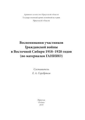 Настоящим сборником Государственный архив новейшей истории Иркутской области продолжает публикацию документов, связанных с политической историей Восточной Сибири XX века. В книге собраны воспоминания участников Гражданской войны - партизан, красногвардейцев, командиров отрядов, очевидцев героических и трагических событий 1920-х годов, хранящиеся в фондах ГАНИИО. Сборник предназначен для широкого круга исследователей и, прежде всего, историков, политологов, краеведов, журналистов, преподавателей, студентов, учащихся и всех тех, кто интересуется историей Гражданской войны в Сибири
